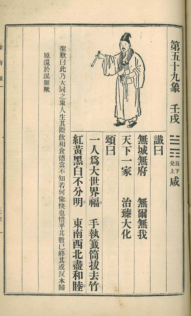 【详志】天阙域外〡疑有兽焉,其身长不知,其形体不知。综合属官所述言录与献礼之格物,臆定佢或具羽部之翼膀,齸门〢之膍胃,虎属之前爪,豕属之后足,首尾与被覆之俱皆不定然。